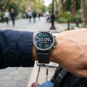 التصميم: تصميم عصري وأنيق يتميز بهيكل معدني متين وسوار سيليكون مريح قابل للتبديل، وتدعم ميزات تتبع اللياقة البدنية، قياس نبض القلب، ومراقبة جودة النوم.